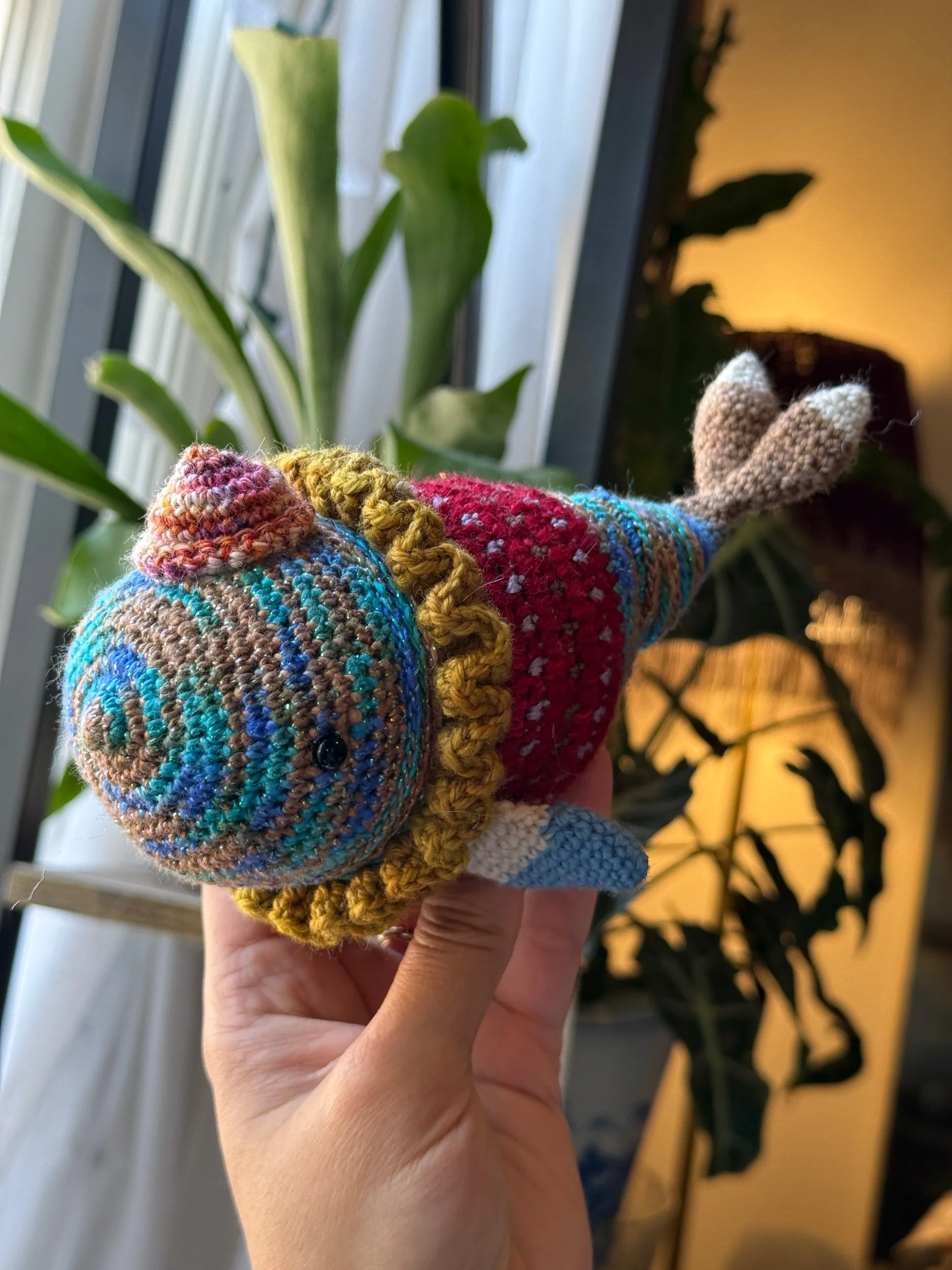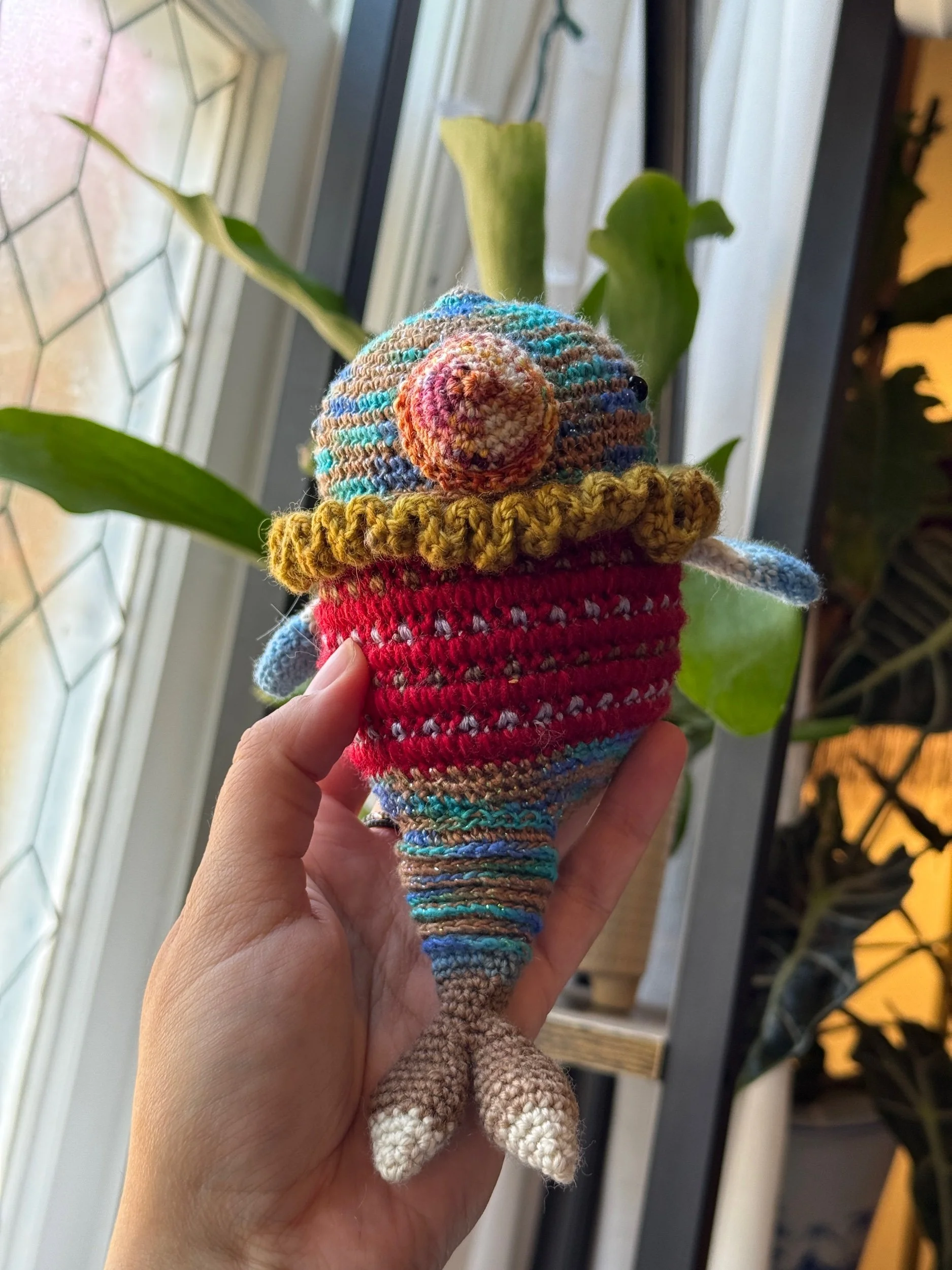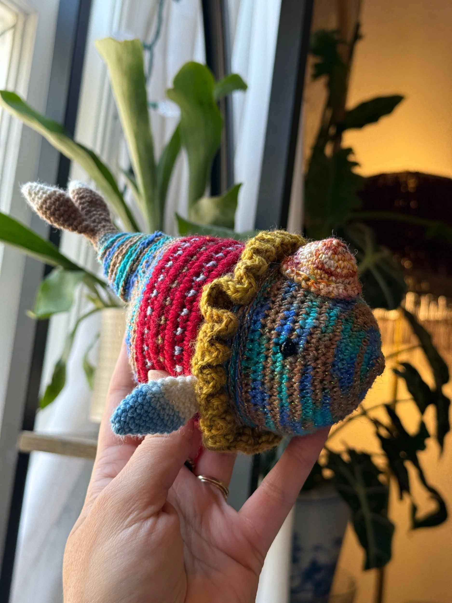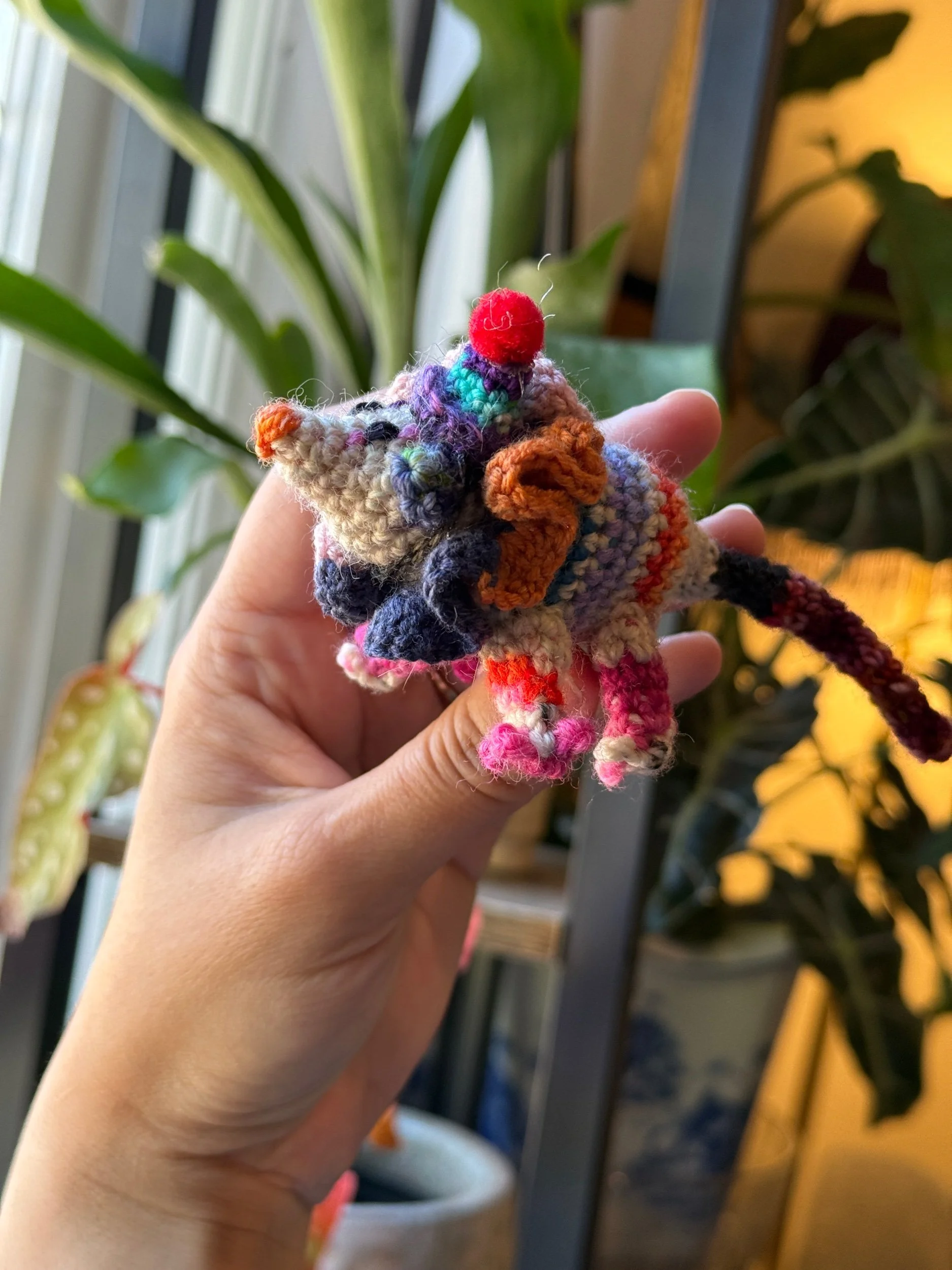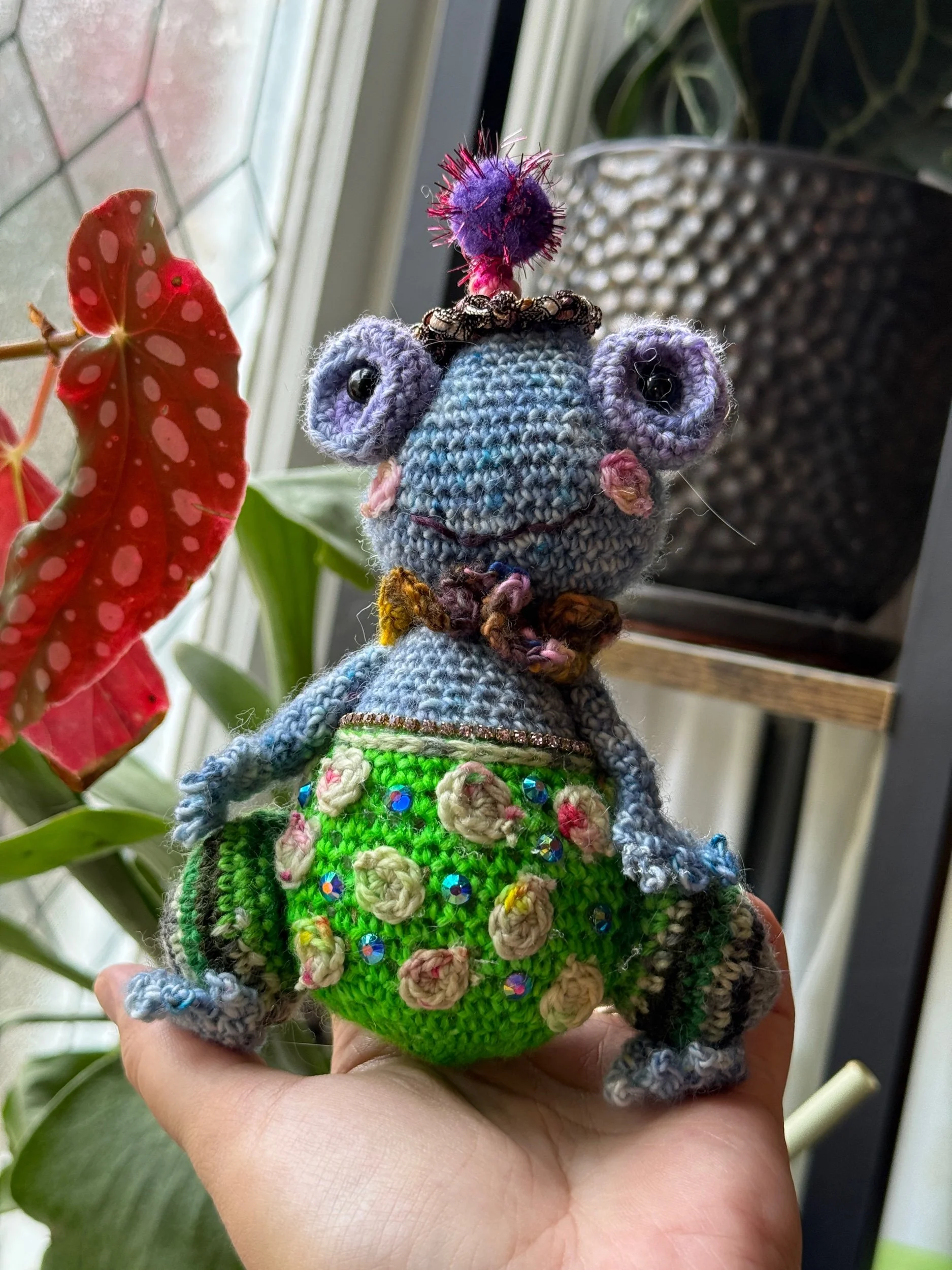 Every piece is lovingly crocheted by artist Midori Longo in Cloverdale, CA. No mass production here—just heart, imagination, and playful stitches.