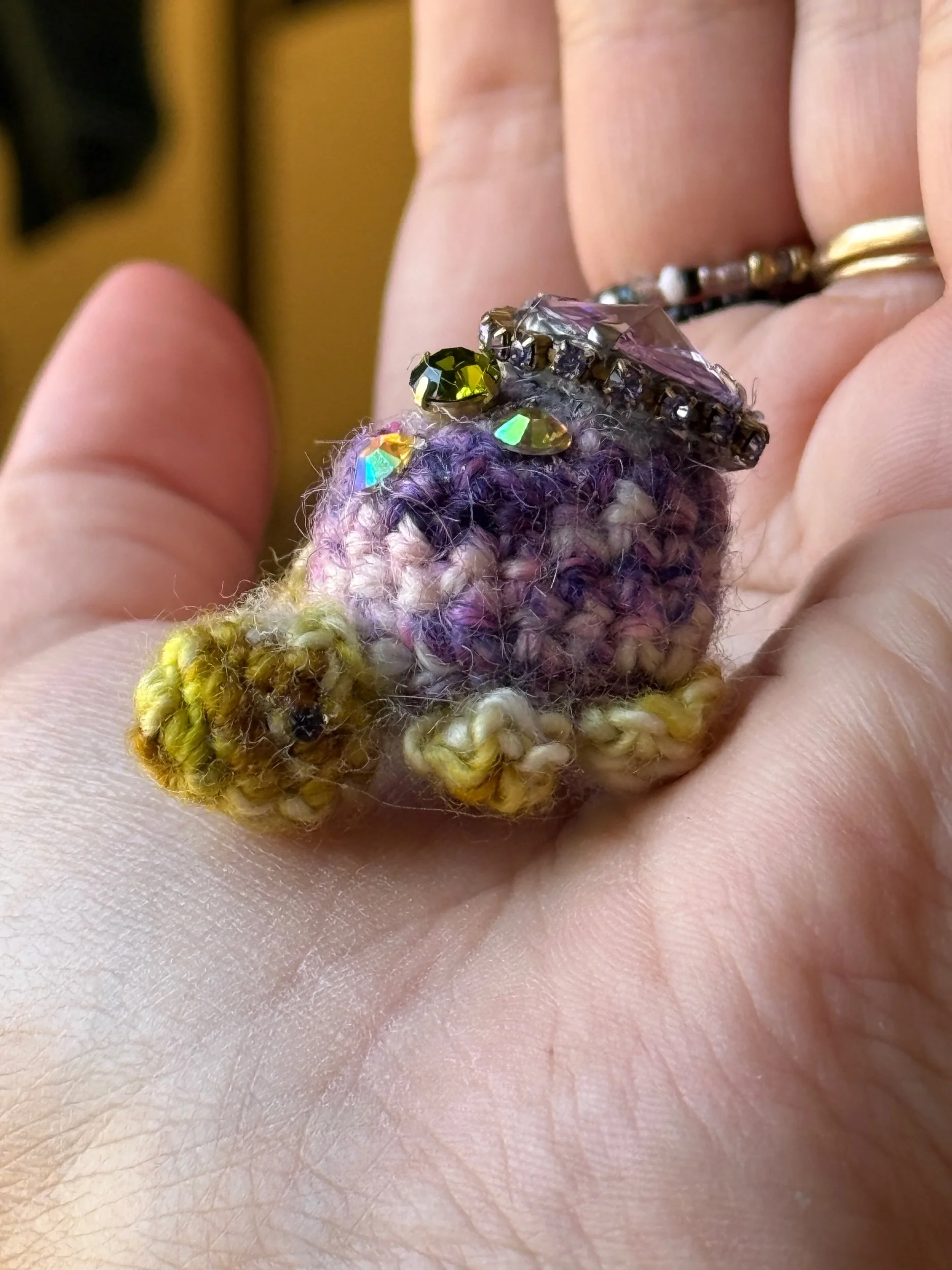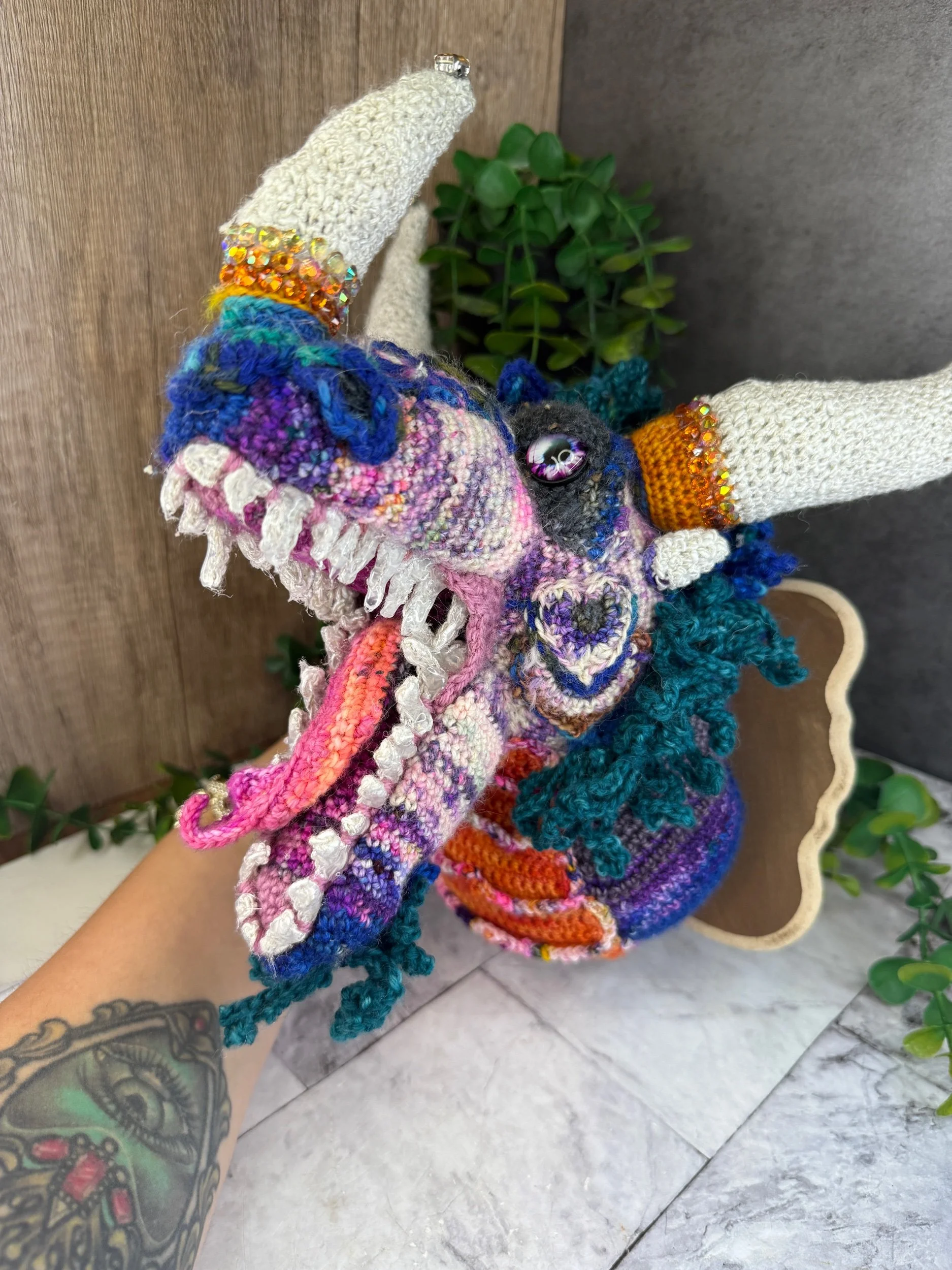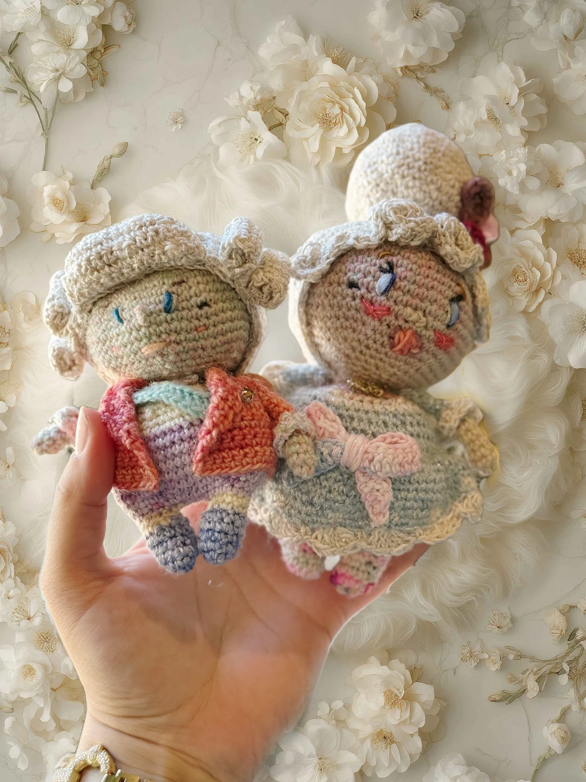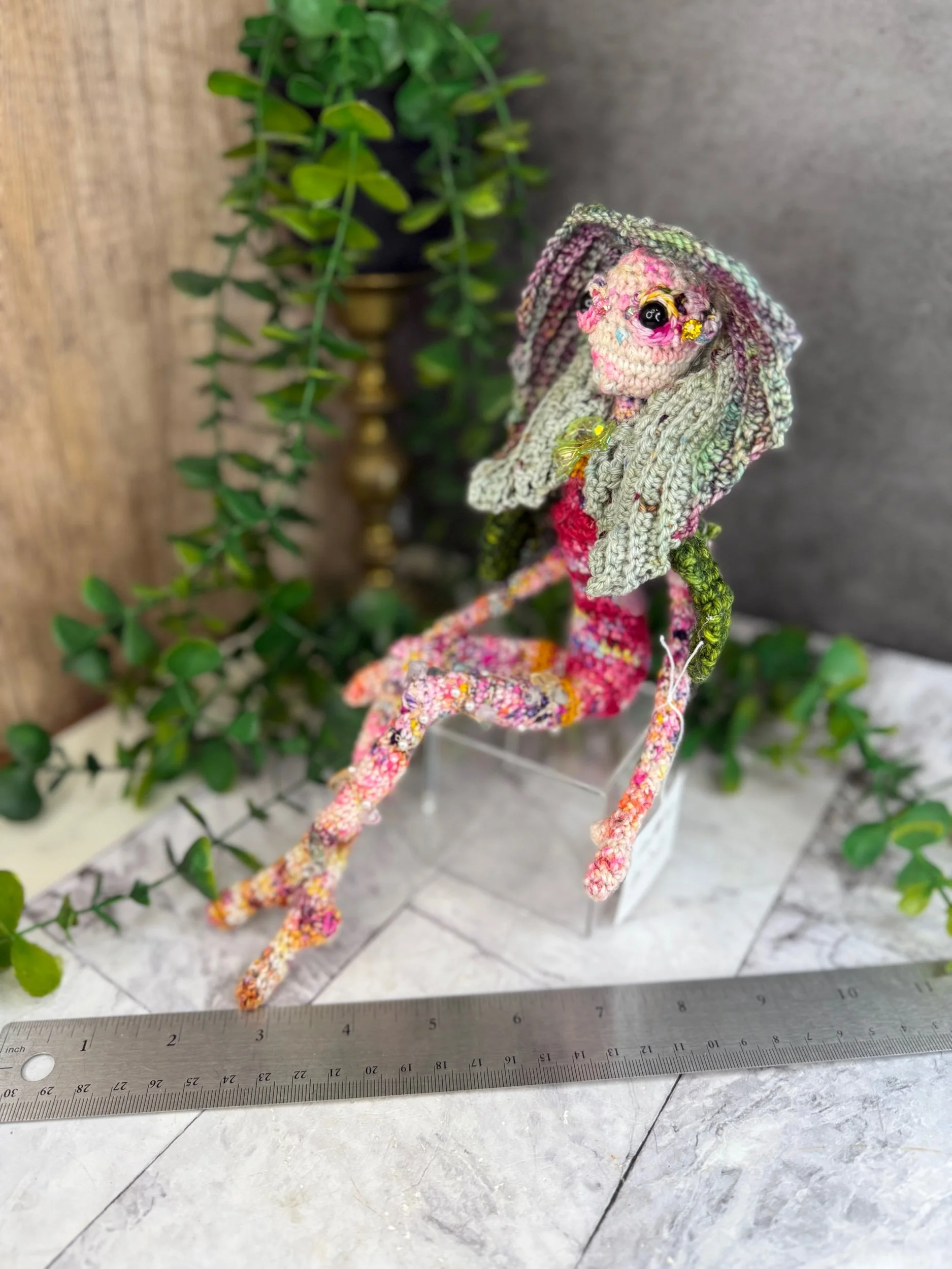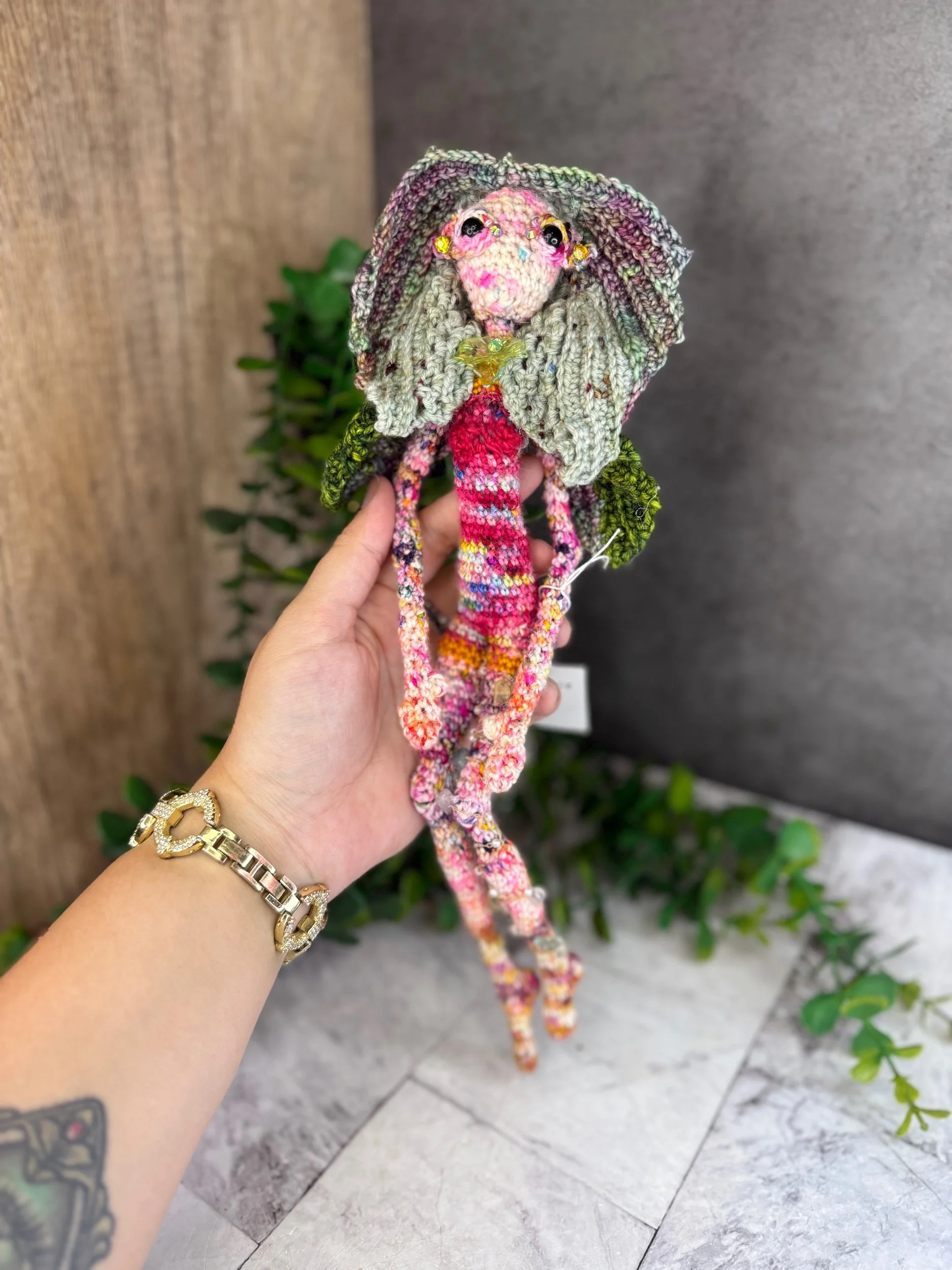 Each creation is made from a unique combination of acrylic, wool, cotton, and specialty acrylic yarn, giving your treasures a one-of-a-kind texture and feel.